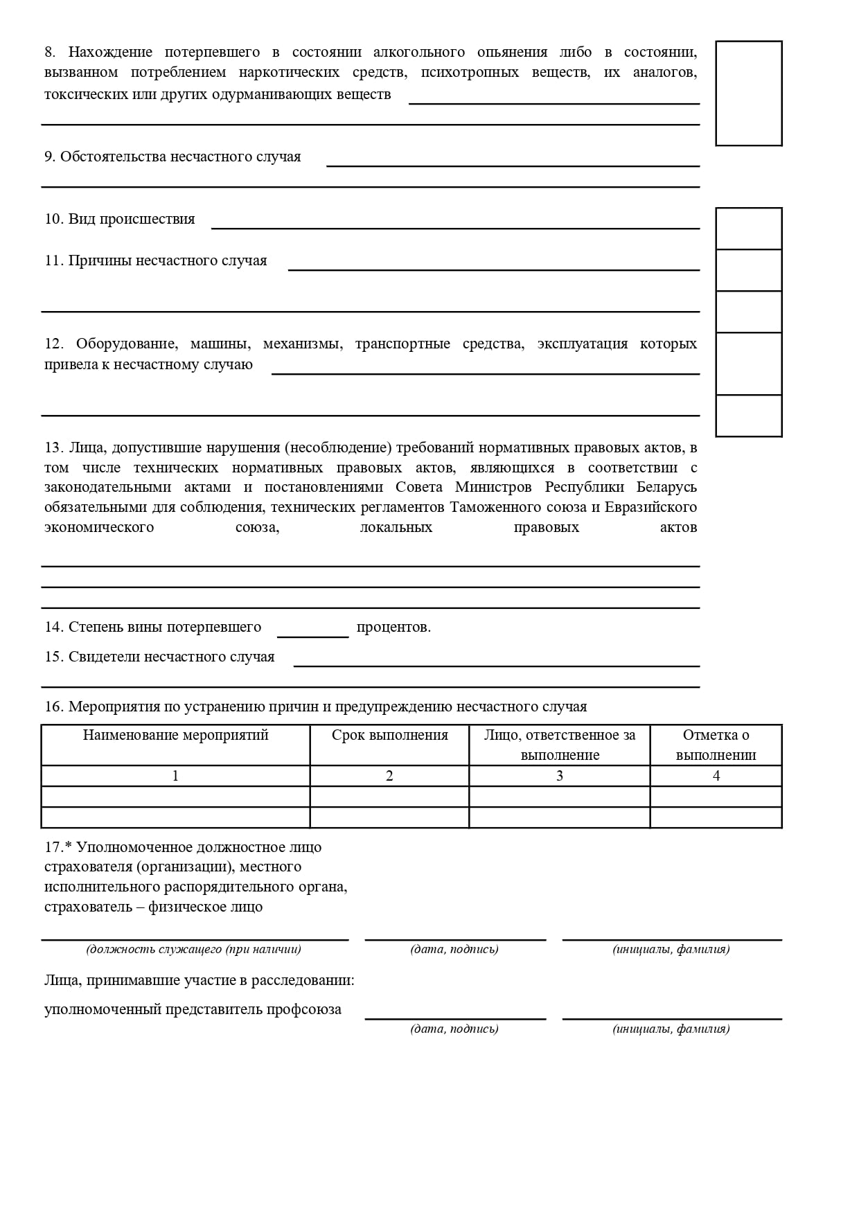 Акт о несчастном случае на производстве (форма Н-1) Акт о несчастном случае на производстве (форма Н-1) Скачать форму акта о несчастном случае на производстве (форма Н-1) Понятие, основные направления и требования по охране труда Основные документы по охране труда Охрана труда в микроорганизации Типовая инструкция по охране труда при проведении погрузочно-разгрузочных и складских работ
