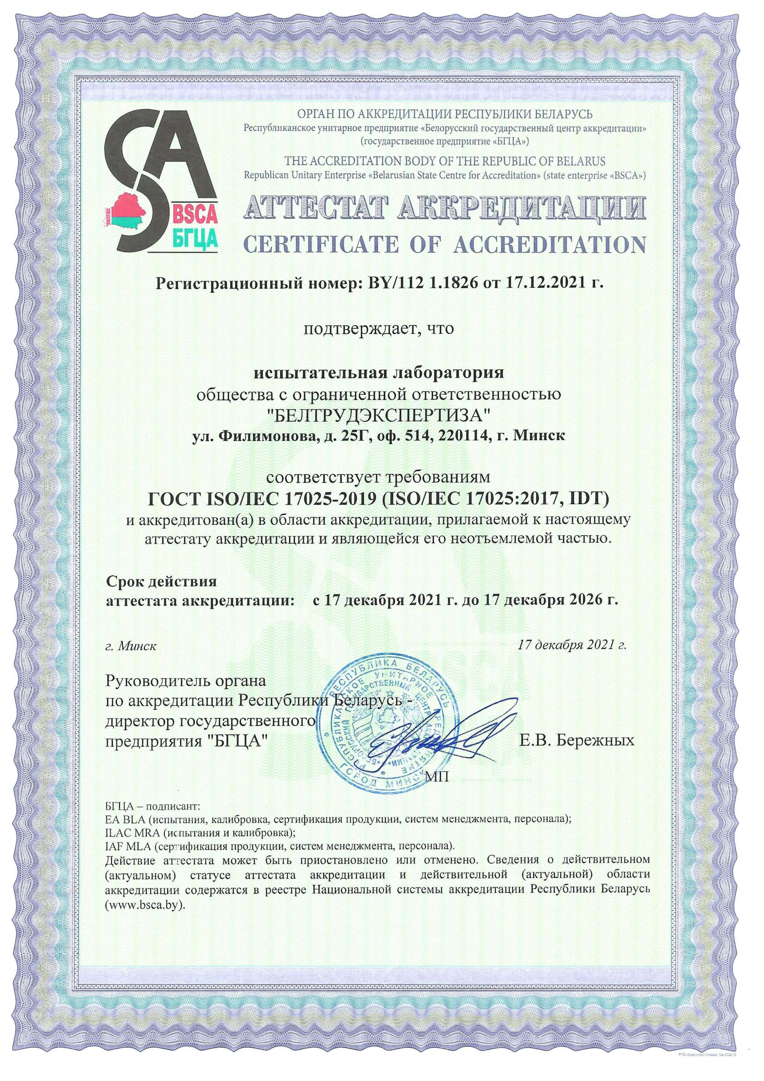 ООО «БЕЛТРУДЭКСПЕРТИЗА» выполнит лабораторные измерения (производственный контроль) химических и физических факторов с выдачей официального протокола и заключения по ним от собственной аккредитованной лаборатории.